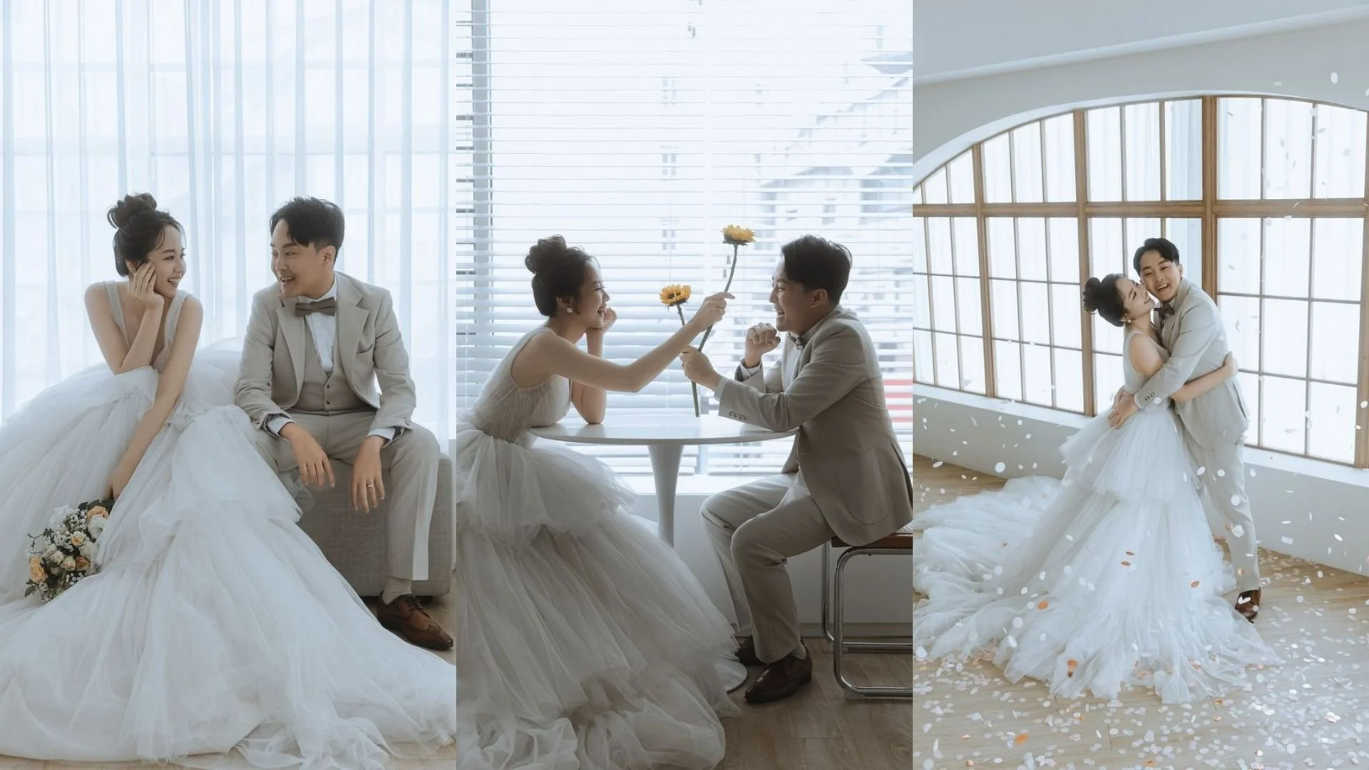 不同於E人偏好高存在感的色系,I型人格的新娘在婚紗顏色上,通常更適合柔和且富有層次感的色調。