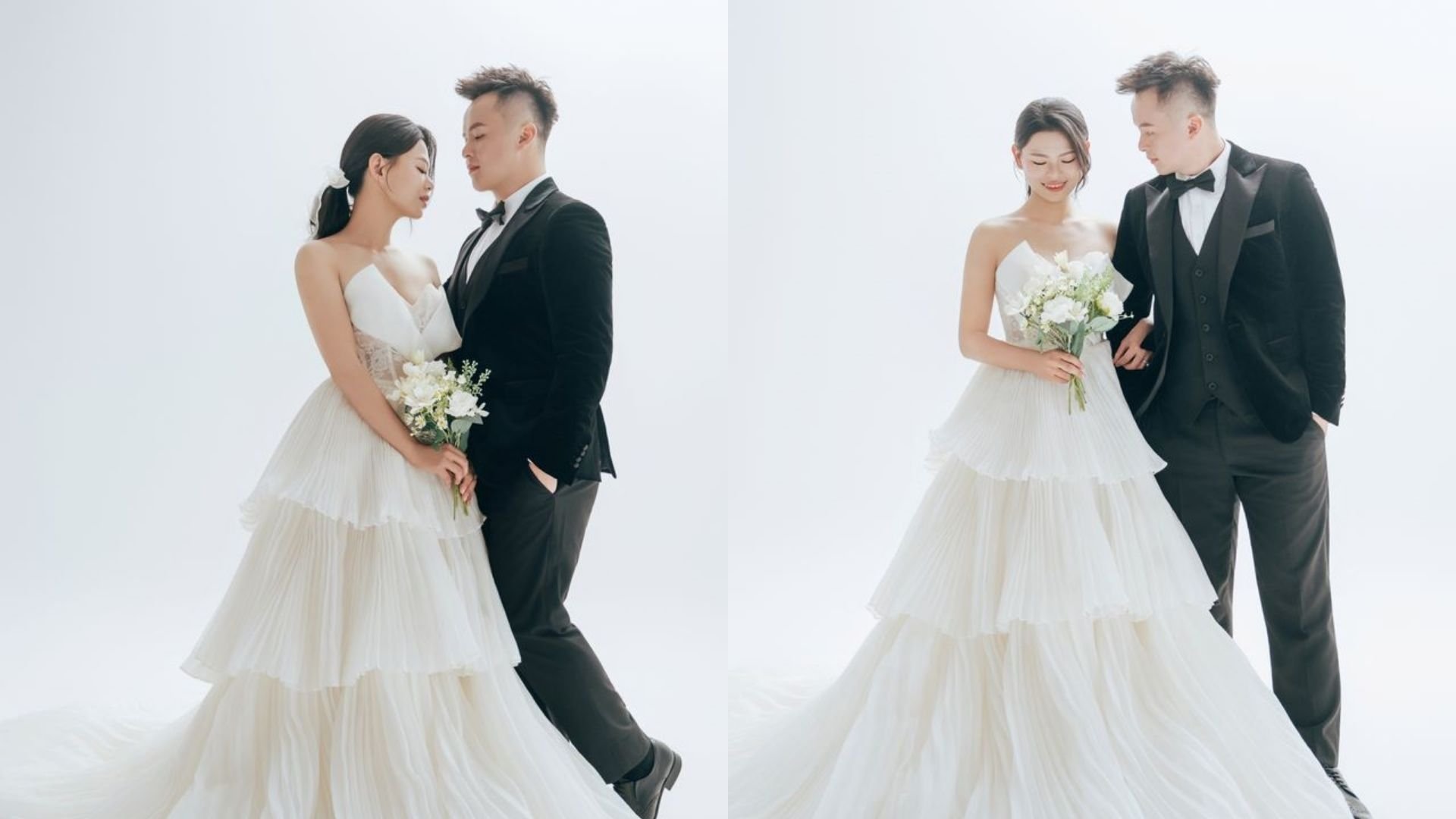 這類型的新娘可以嘗試「主婚紗氣場款+送客柔美款」的搭配方式,兼顧舞台與自我。